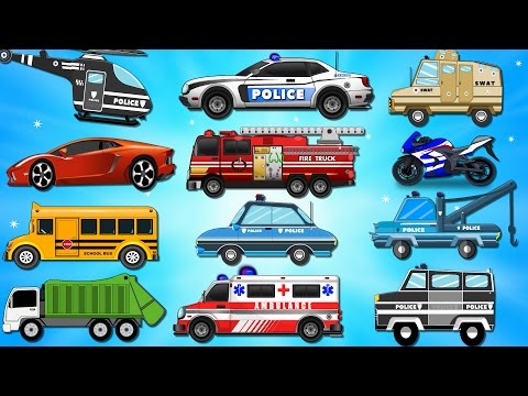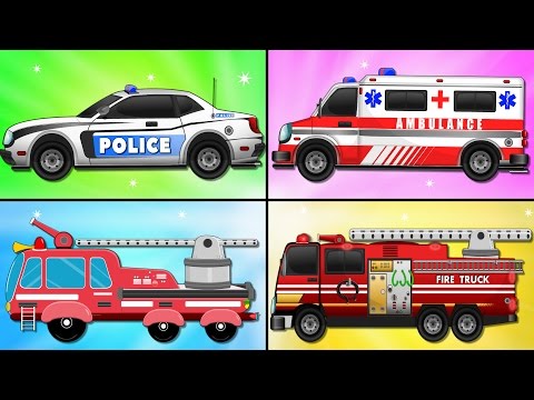 Fire Truck Police Car Emergency Vehicles and Ambulance in Car Garage - Kids Videos