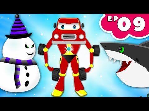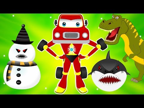 Red Super Car vs Snowman Dinosaur & Flying Shark | Cars Cartoon for Children - Kids Song