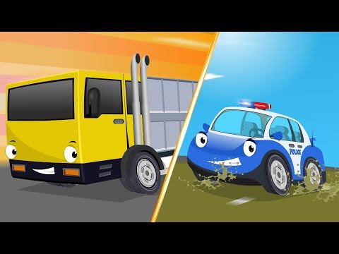 Crane Truck vs Super Dump Truck | Police Car Street Vehicles Kids Cartoon Songs