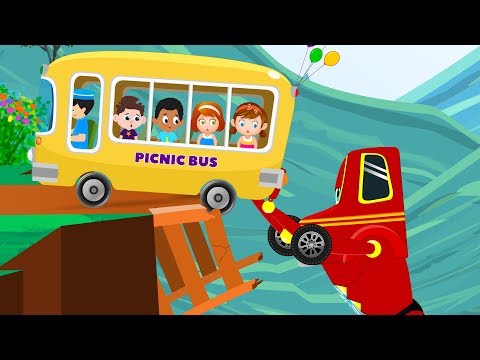 Kids Picnic Bus Peril Rescued by Red Super Car - Cartoons For Kids Song