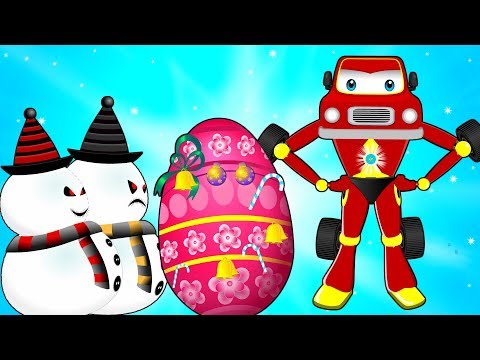 Snowman has Stolen Christmas Surprise Egg Rescued by Red Super Car | Videos for Kids Song