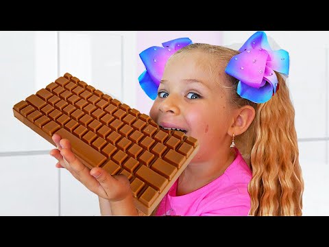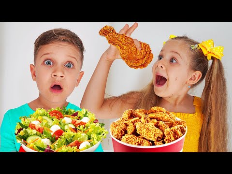 Diana and Roma Pretend Play School & Eat not Healthy food
