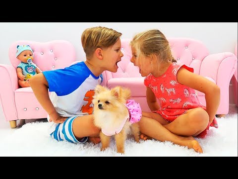 Diana and Roma play with a Dog and older sister