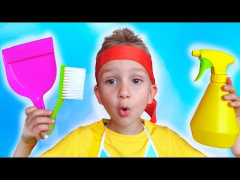 Vlad and Nikita Play with Cleaning Toys and help Mom