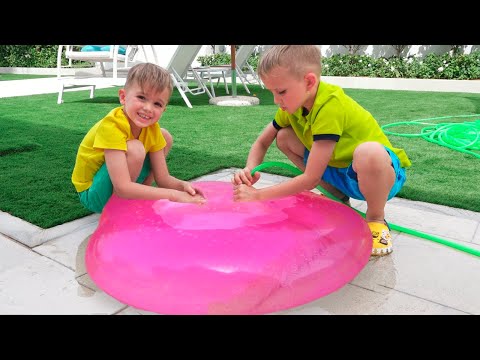Vlad and Nikita play with inflatable Toys