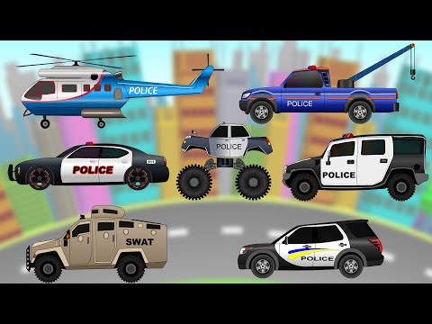 Learn Police Cars | Trucks | Police Helicopter | Video for Children